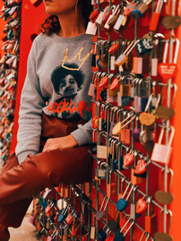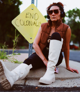 Sitting. On the floor, perched on something, on a step. All good ideas and depending on the angle and vibe, you can get very creative with sitting shots.